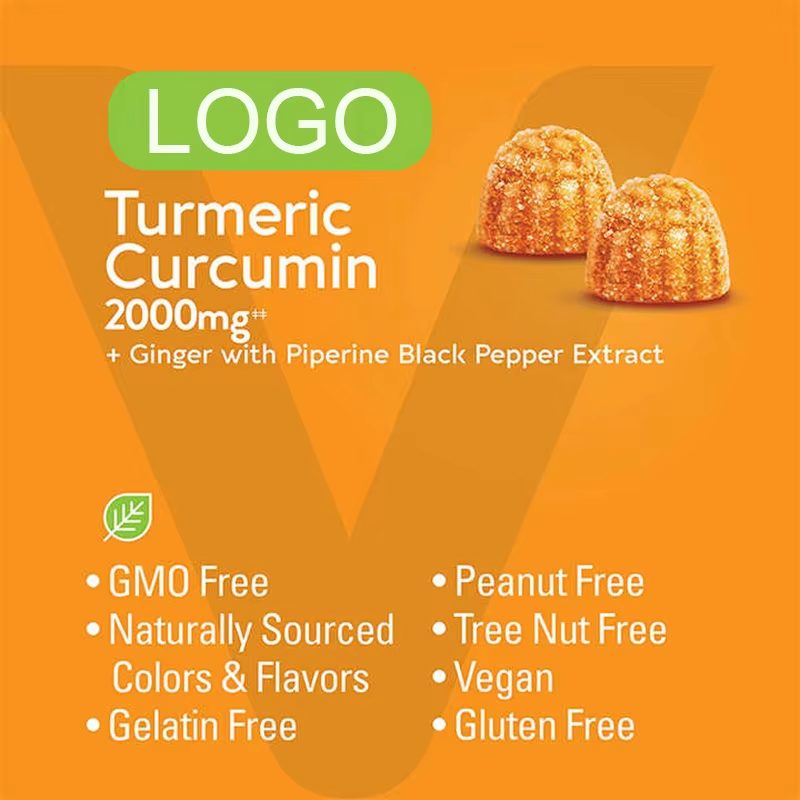 Complément alimentaire à base de curcuma et de curcumine sous forme de gommes pour l'énergie et la santé des articulations chez l'adulte, extrait de gingembre et de poivre noir - Non destiné aux femmes enceintes