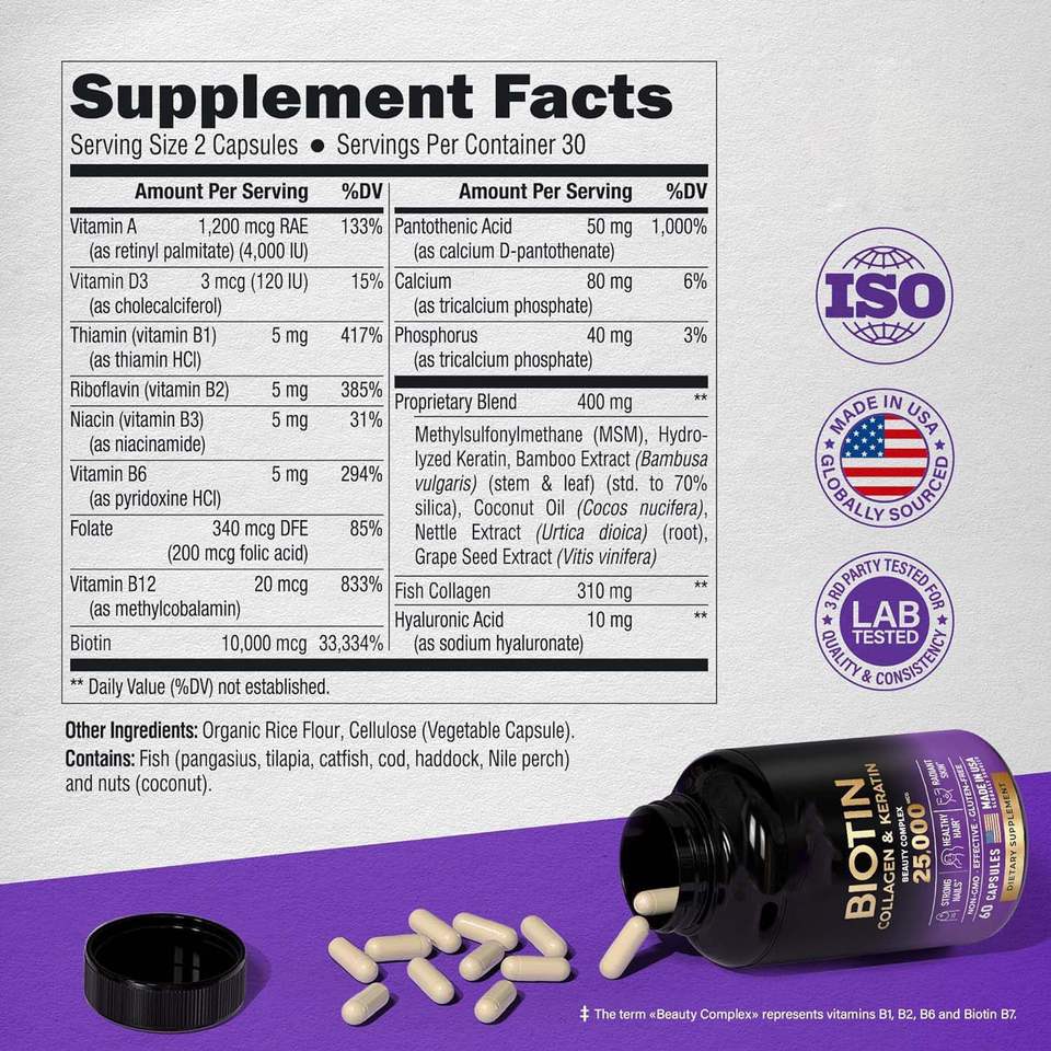 Biotin, Biotin 5000 mcg; Collagen 500 mg