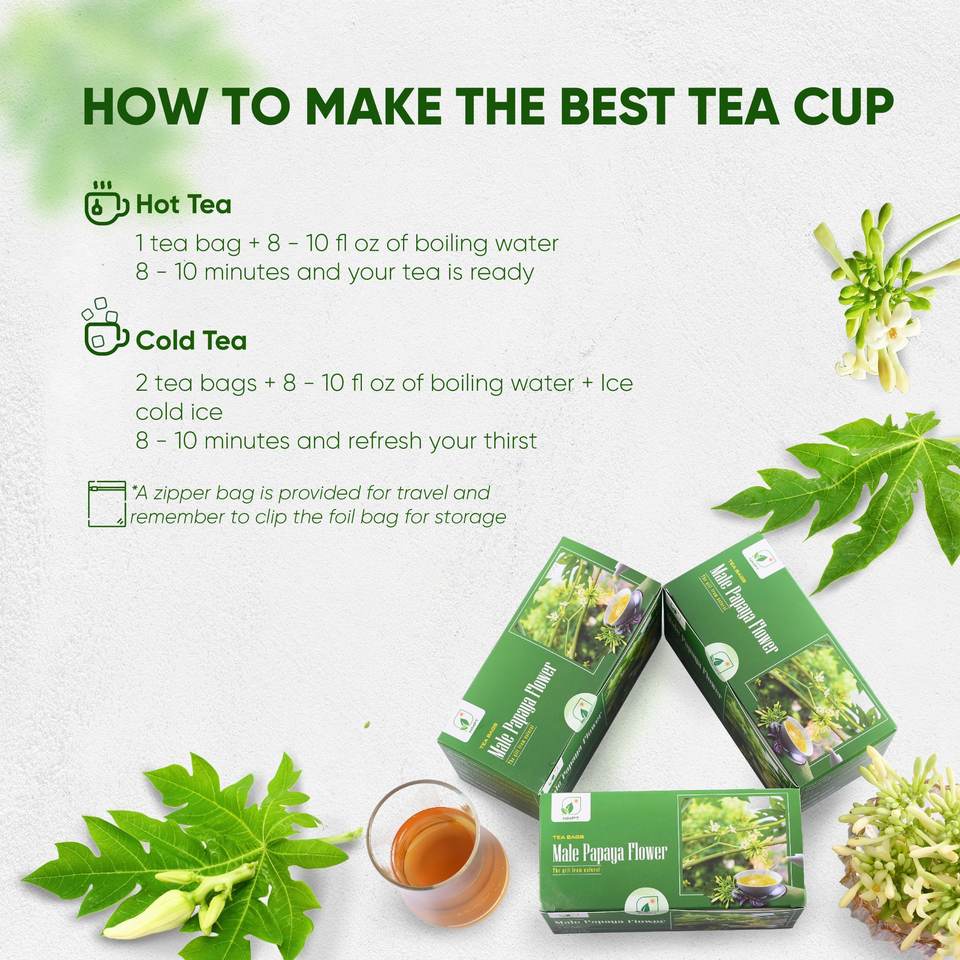 Collection d'exportation de tisanes de qualité supérieure Marque NMPT Mélange de tisanes de fleurs de papaye pour hommes Boisson saine séchée du Vietnam Durée de conservation de 2 ans