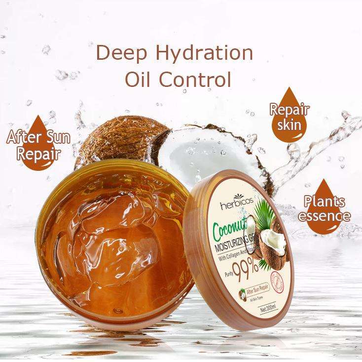 Herbicos – Gel hydratant pour le visage, 300ml, réparation naturelle des coups de soleil, Anti-acné, huile de contrôle, 99% noix de coco