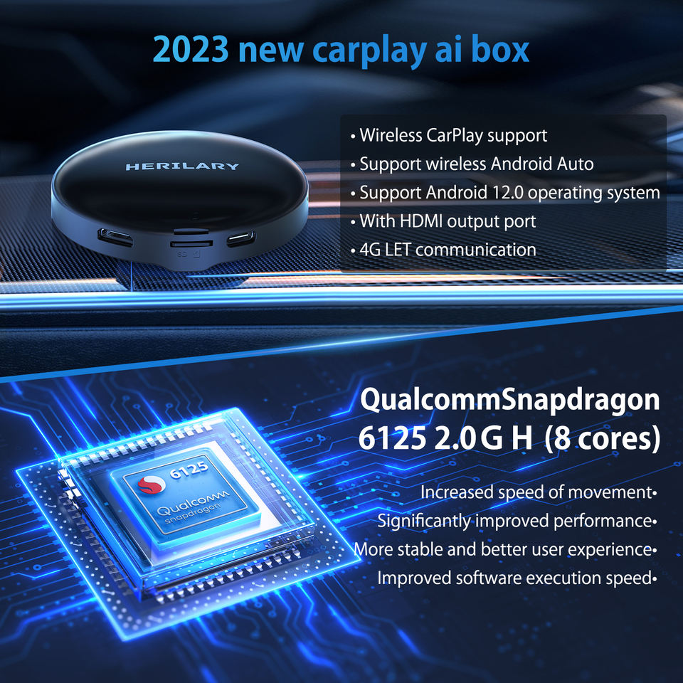 Herilary Boîtier CarPlay sans fil C8 personnalisé Android 12 pour voitures d'origine avec Carplay filaire, adaptateur Android Auto CarPlay