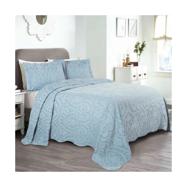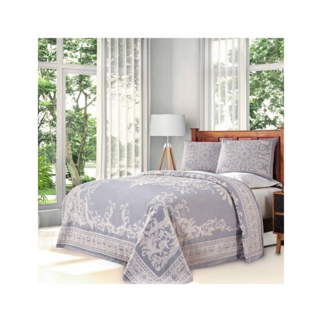 Heritage Pastel Grey 600TC Damask Royal Pattern Fair Trade Certified Heavyweight Bedspread For Luxury Indian Wedding Gifts