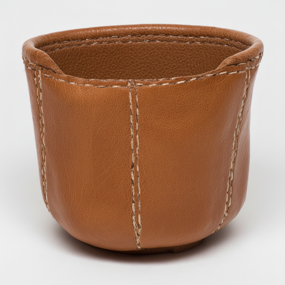 Pot en cuir de style héritage en taille mini pour une touche verte de bureau avec des détails subtils faits à la main et une texture riche