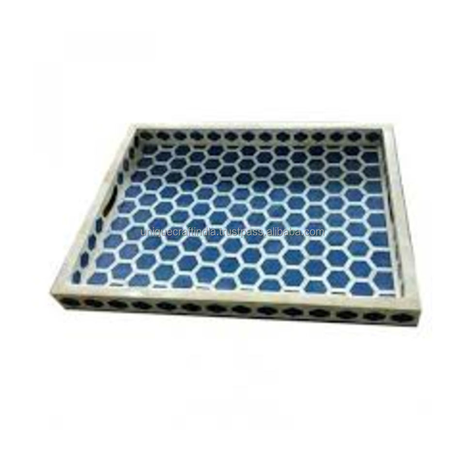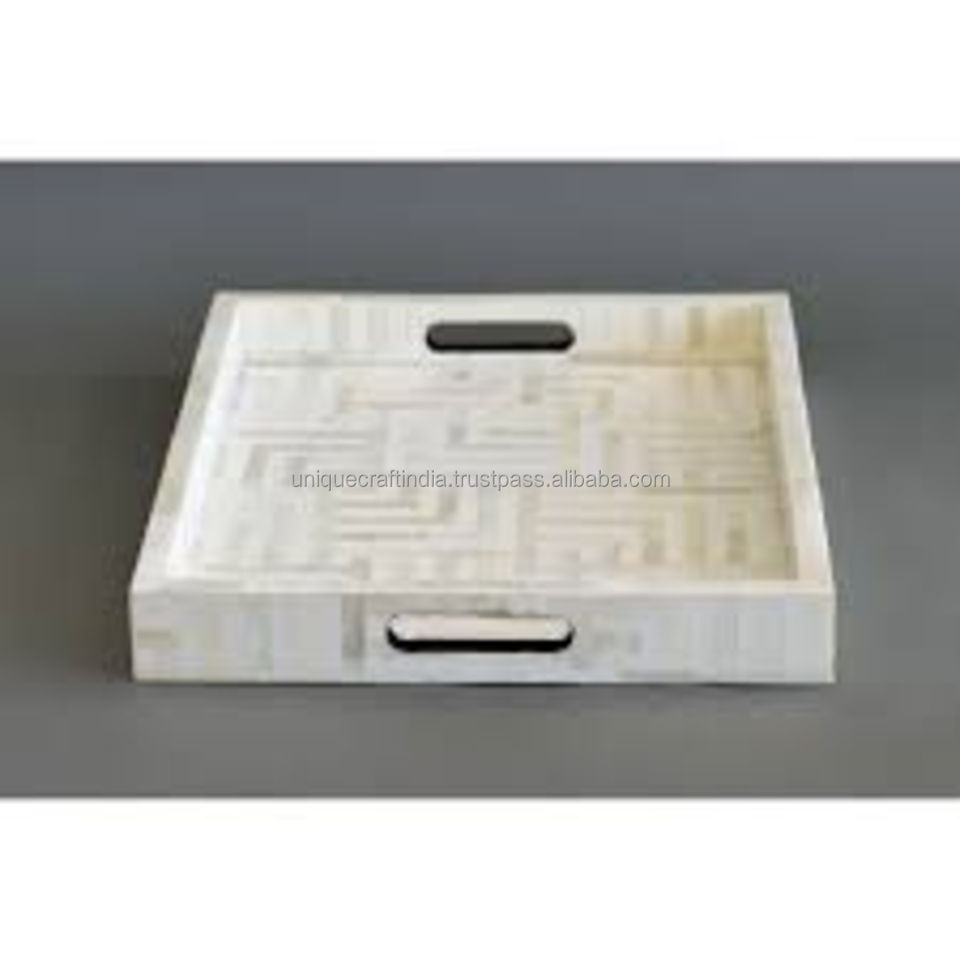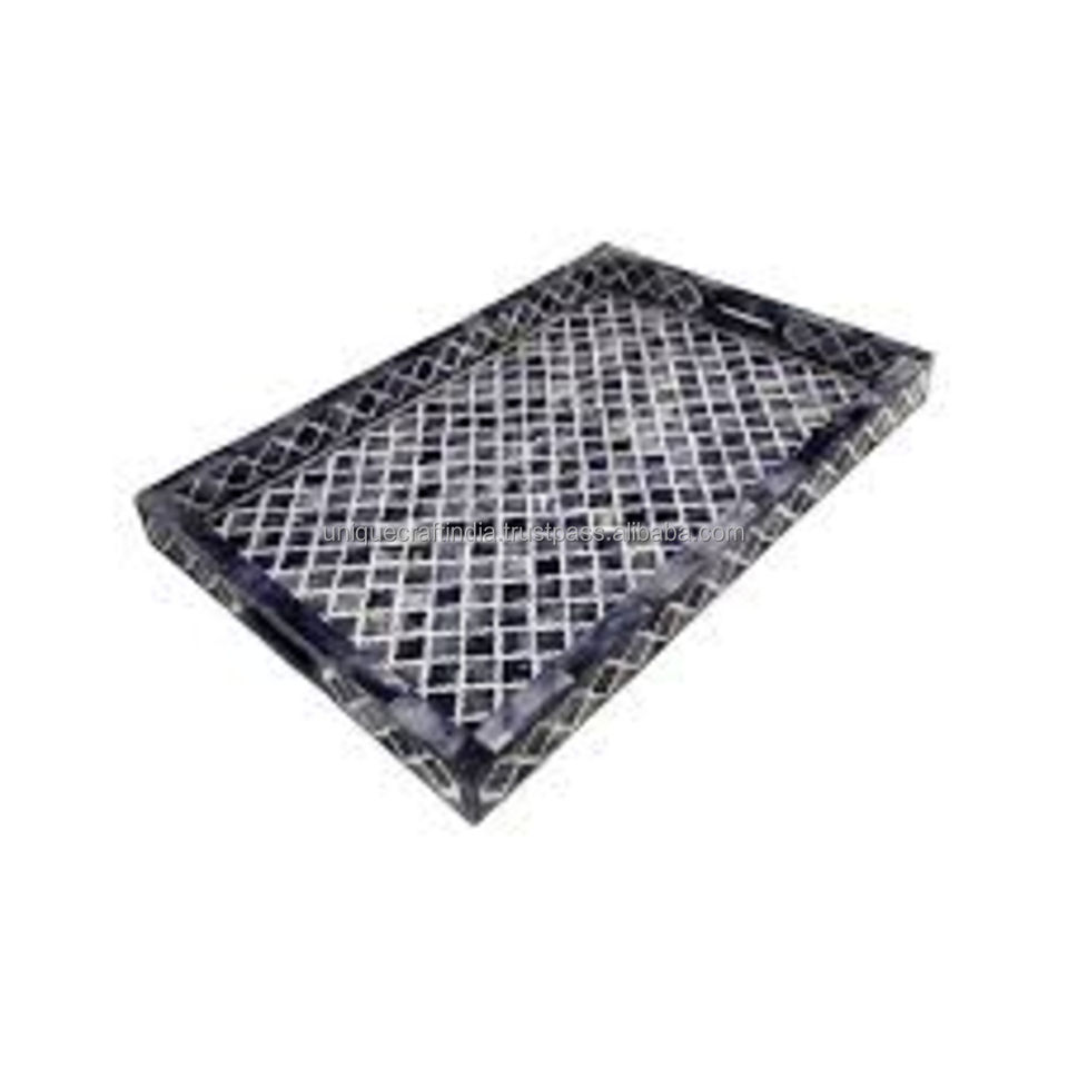 Plateau d'incrustation d'os HeritageCraft | Plateaux de service classiques d'inspiration ancienne avec sous-verres pour l'affichage de la décoration intérieure et les cadeaux élégants