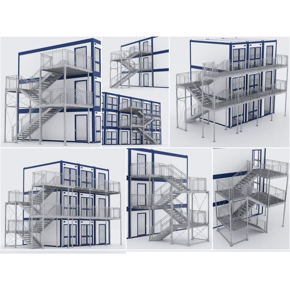 Systèmes d'escaliers et escaliers de conteneur pour conteneurs résidentiels – modulaires, galvanisés à chaud