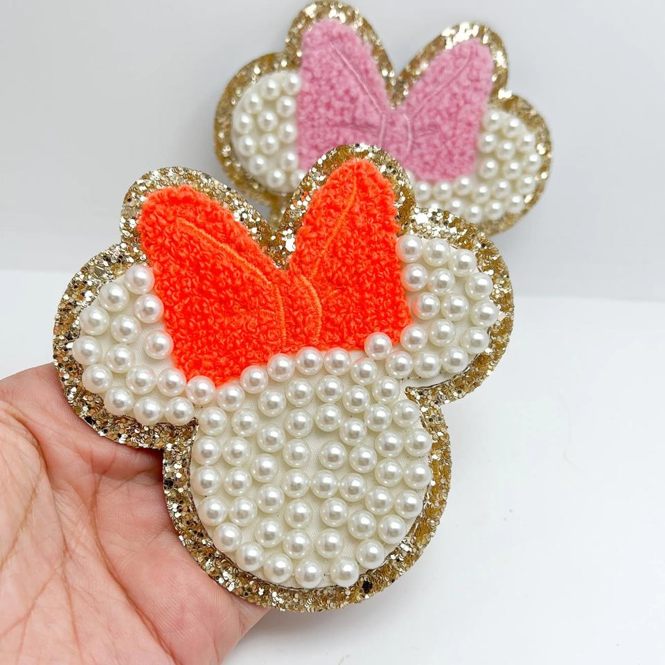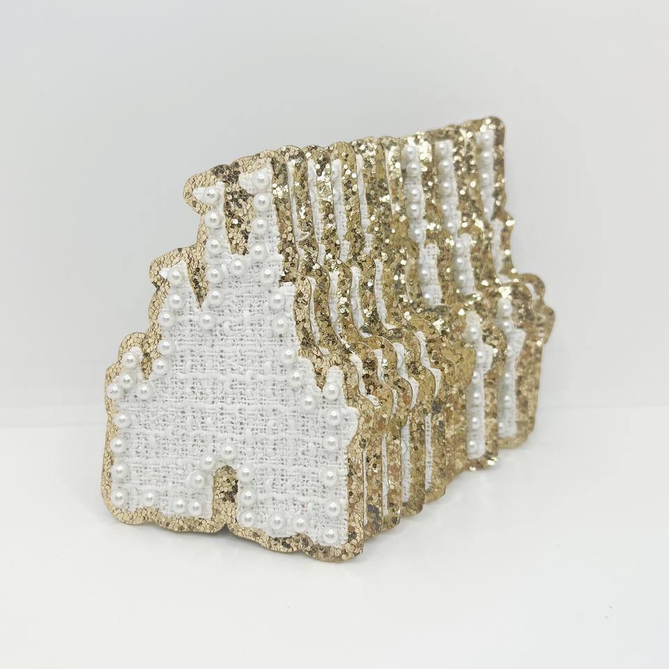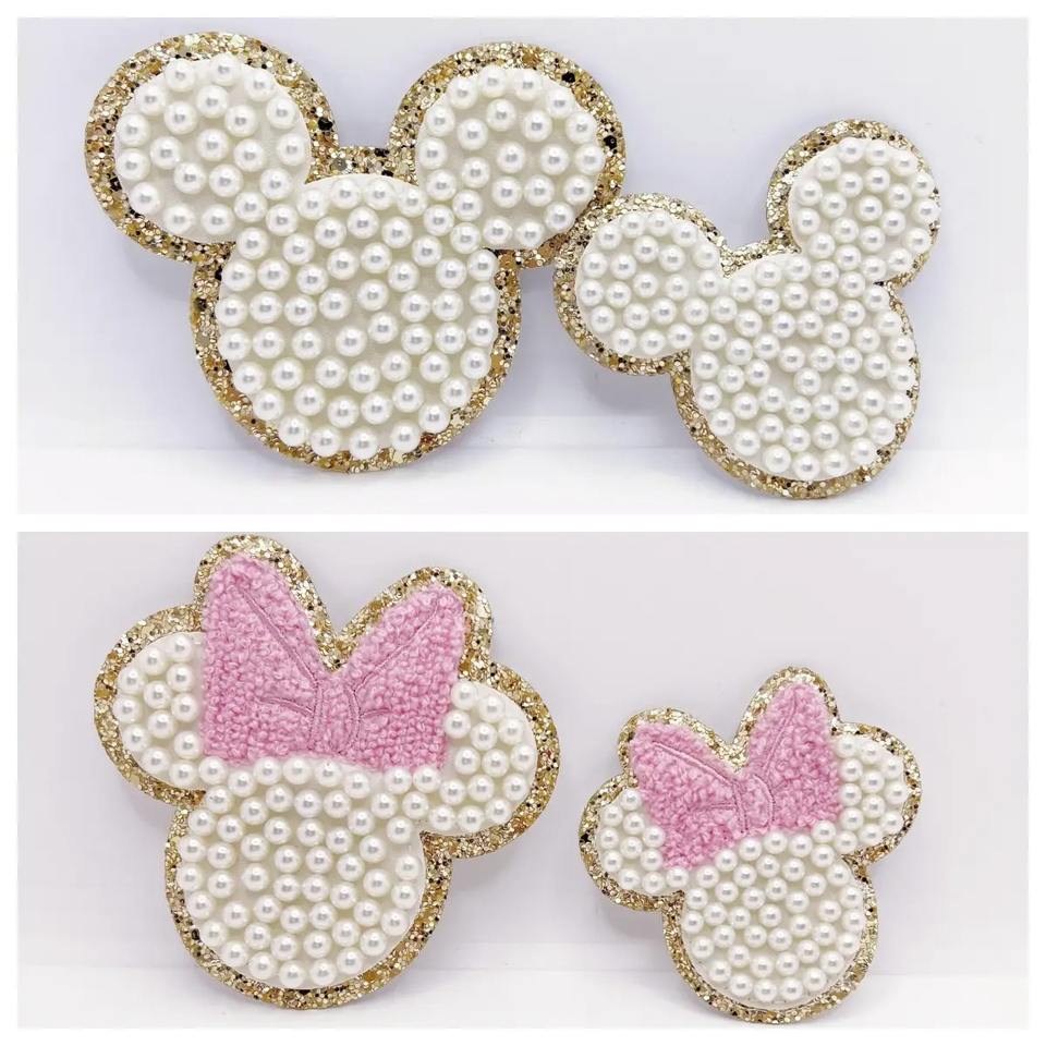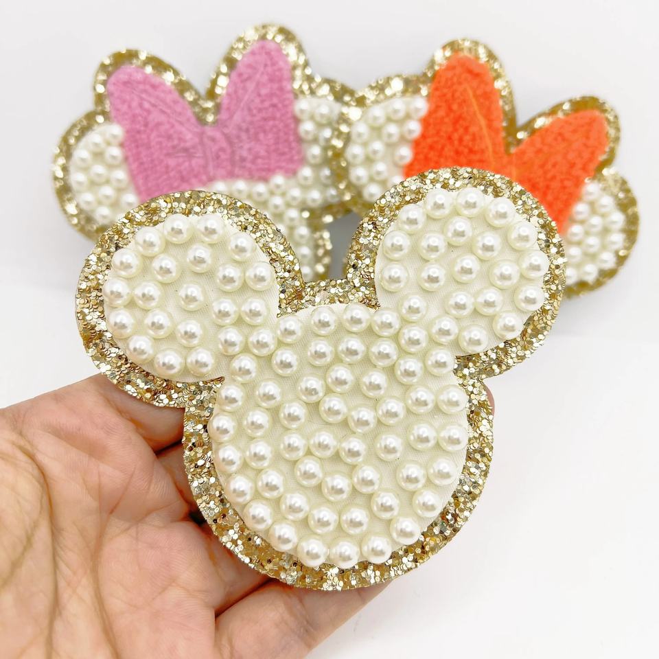 Strass Perle Mignon Château Chenille Patch Bâton Sur Patchs Lettre
