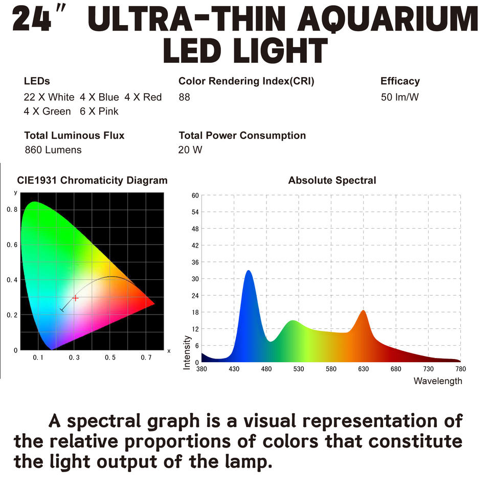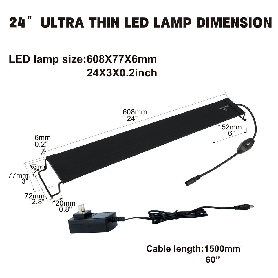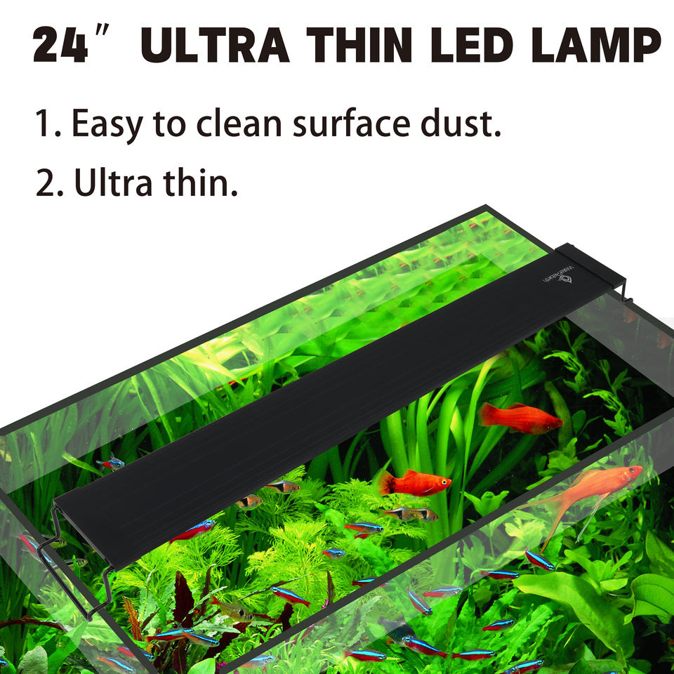 Lumière LED pour aquarium Heto 18 pouces, spectre complet, eau douce/plantaire/réef/corail, étanche IP67, 20W, CRI élevé 90, 3000 Lux, aluminium