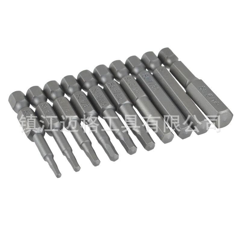 10 PC Imperial Hex Screwdriver Bits, 50mm in diameter, sandblasted