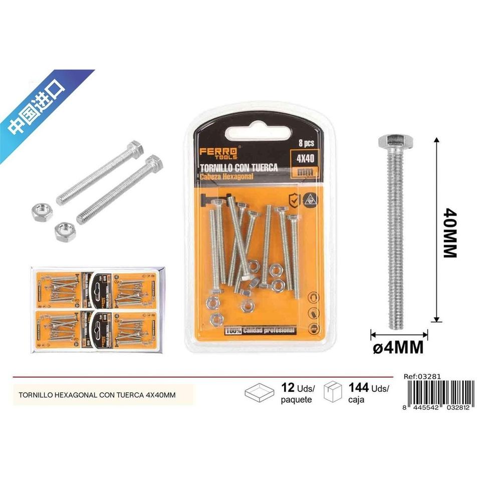 Boulon hexagonal avec écrou 4x40mm-Accessoires de quincaillerie