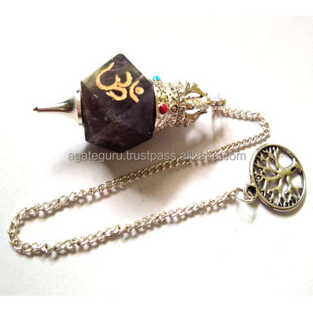 Hexagon Amethyst Om:Hexagon Amethyst Om Reiki Healing Pendulum