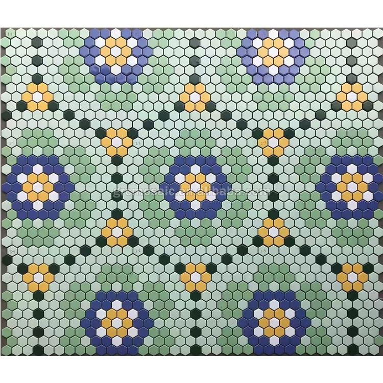 Hexagone bleu larmes Style lisse céramique mosaïque murale pour mur fait à la main motif vert sol décoration mosaïque Puzzle carreaux