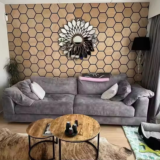 Panneau acoustique de conception hexagonale mur à lattes 2400*600mm étanche extérieur MDF fibre de bois PET feutre Polyester pour entrepôt
