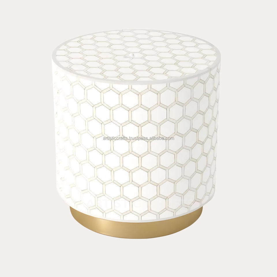 Tabouret en incrustation d'os vieilli au design moderne bleu et blanc à motif hexagonal pour la maison salon chambre jardin et bars