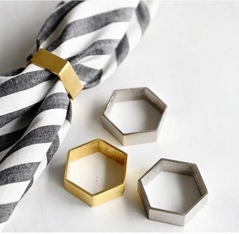 Anneau de serviette en métal de forme hexagonale plaqué or pour les fêtes de mariage décoration de table porte-serviettes en vrac fait à la main