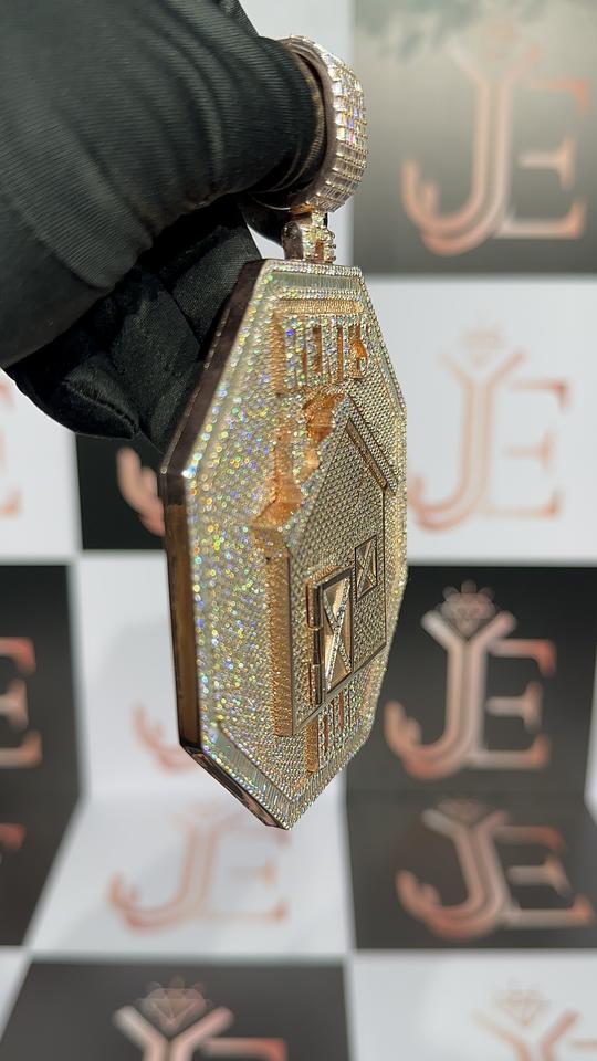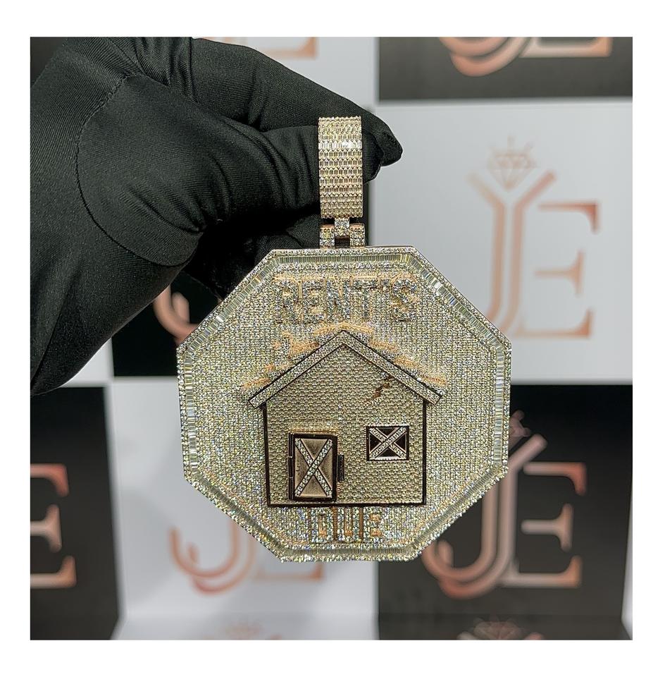 Pendentif en forme d'hexagone avec motif 'Home Rent Due', pendentifs en moissanite, bijoux fins hip-hop en argent sterling 925