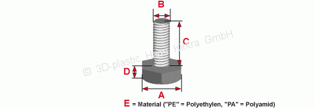 Plaque de base hexagonale - Polyamide 6 et filetage en acier M10x50
