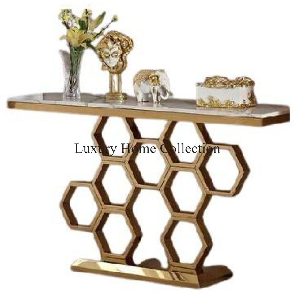 Table d'appoint et console en métal de forme hexagonale abat-jour antique en laiton fait à la main Design luxueux salon meubles en forme de rectangle