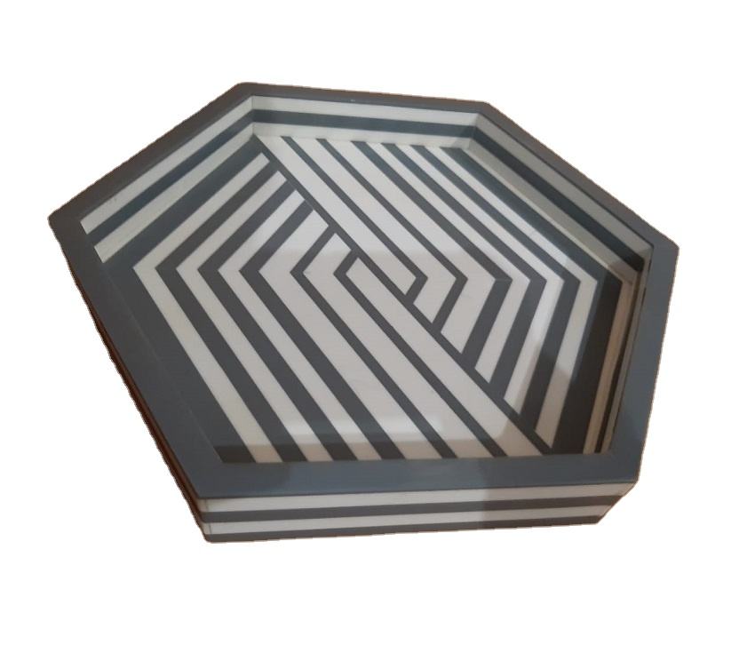 Forme hexagonale résine incrustation plateau de service matériau écologique plateau de petit déjeuner Style élégant maison luxe Table décor os incrustation de service