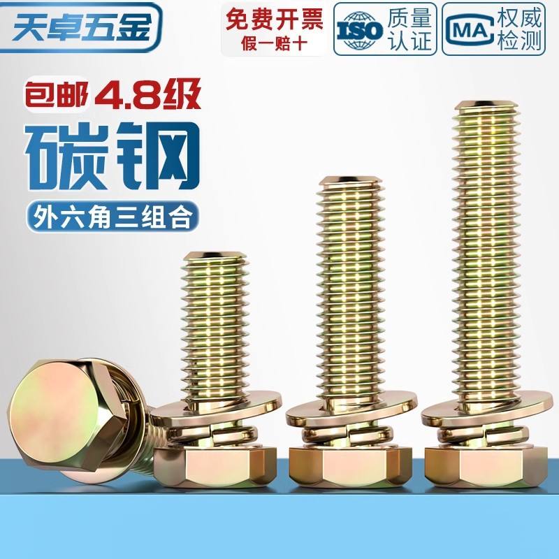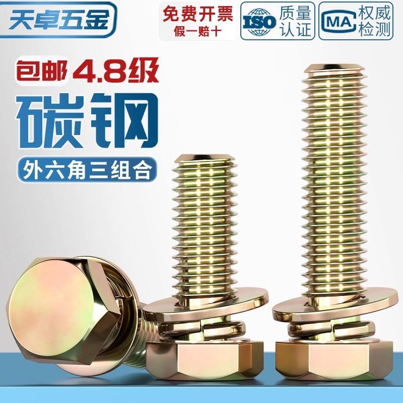 Hexagonal Three Piece Combination Screws M4 M5 M6 M8 M10 M12 Zinc Plated Fully Threaded For Corrosion Resistance