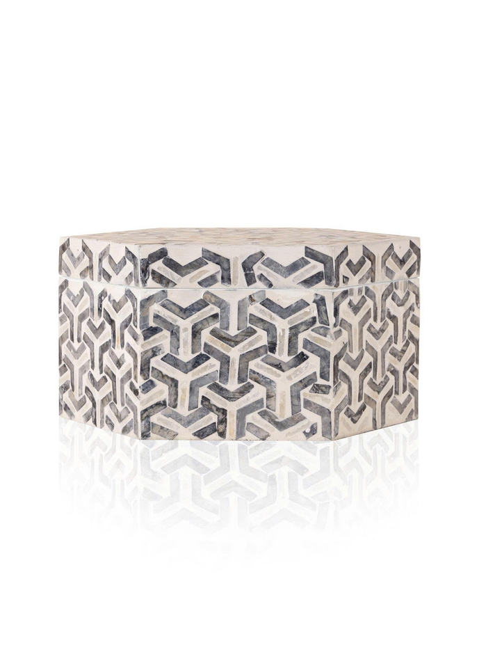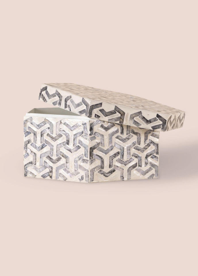 Product name:Hexagonal mother-of-pearl inlaid jewelry box, black and white gift box