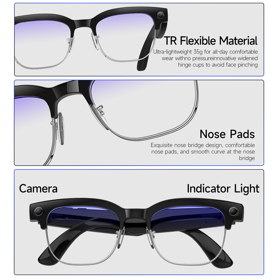 Hey Cyan W630 Film en verre intelligent commutable avec caméra vidéo Lunettes de soleil Sports Traduction en temps réel Casque portable intelligent