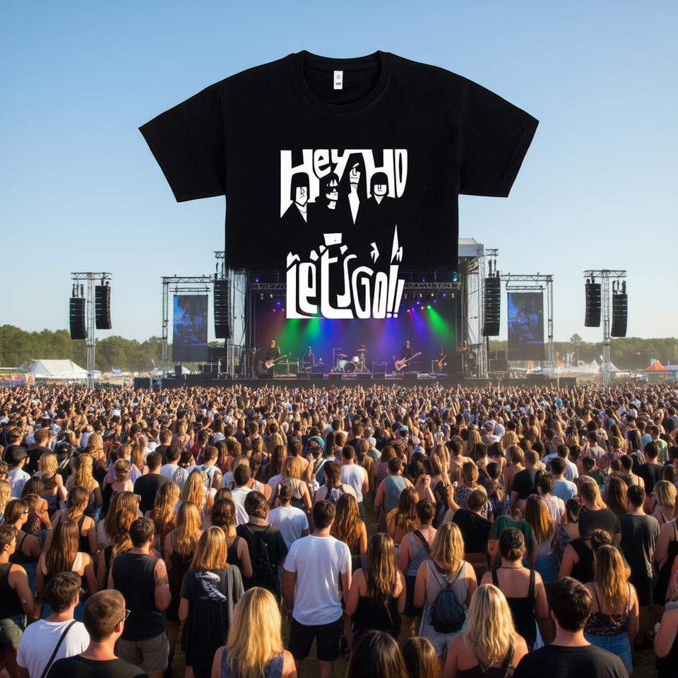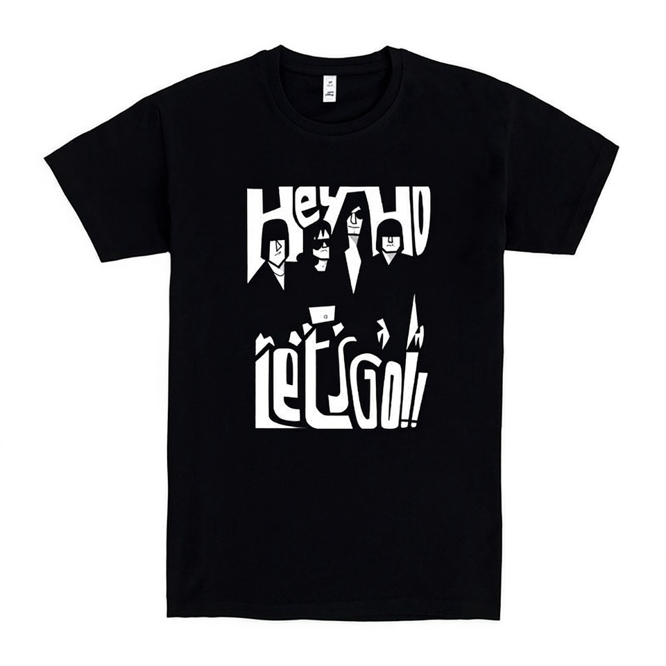 T-shirt noir unisexe en coton Hey Ho Let's Go, chemise promotionnelle