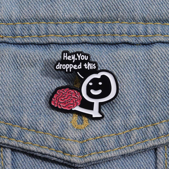 Hé vous avez laissé tomber cette épingles en émail cerveau personnalisé drôle Phrases humoristiques Phrases broche revers Badge sarcastique bijoux cadeau en gros