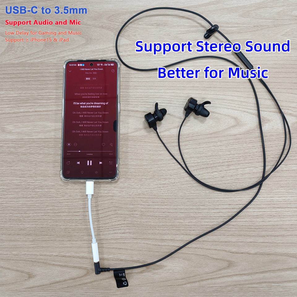 Adaptateur casque USB-C vers 3,5 mm haute résolution, prise jack 3,5 mm avec micro, pour iPhone 15 Android, DAC stéréo numérique