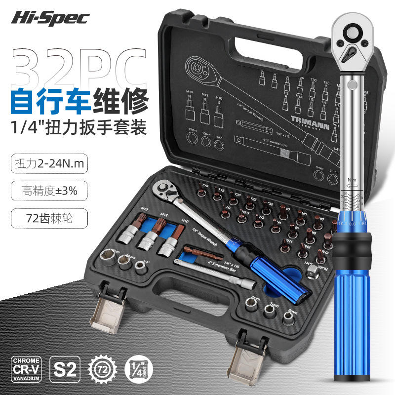 Kit de clés dynamométriques de réparation de vélo Hi-Spec 32 pièces, 1/4 po, en acier au chrome-vanadium, haute précision, avec étui rigide
