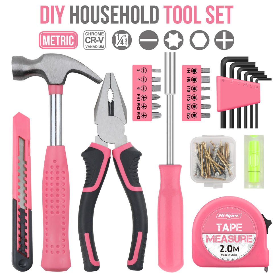 Kit d'outils domestiques Hi-Spec 2.0M avec mètre ruban, marteau, pinces et tournevis pour réparations domestiques