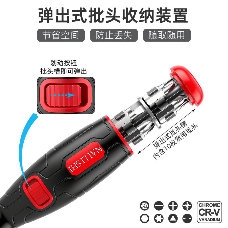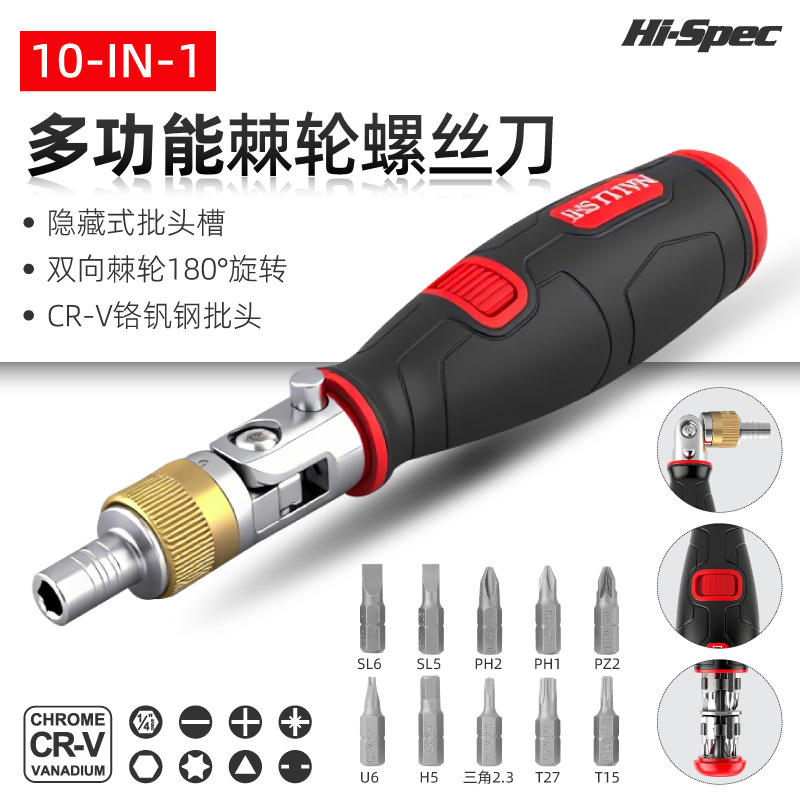 Jeu de tournevis à cliquet multifonction Hi-Spec en acier Cr-V 10 en 1 avec poignée antidérapante pour réparation DIY