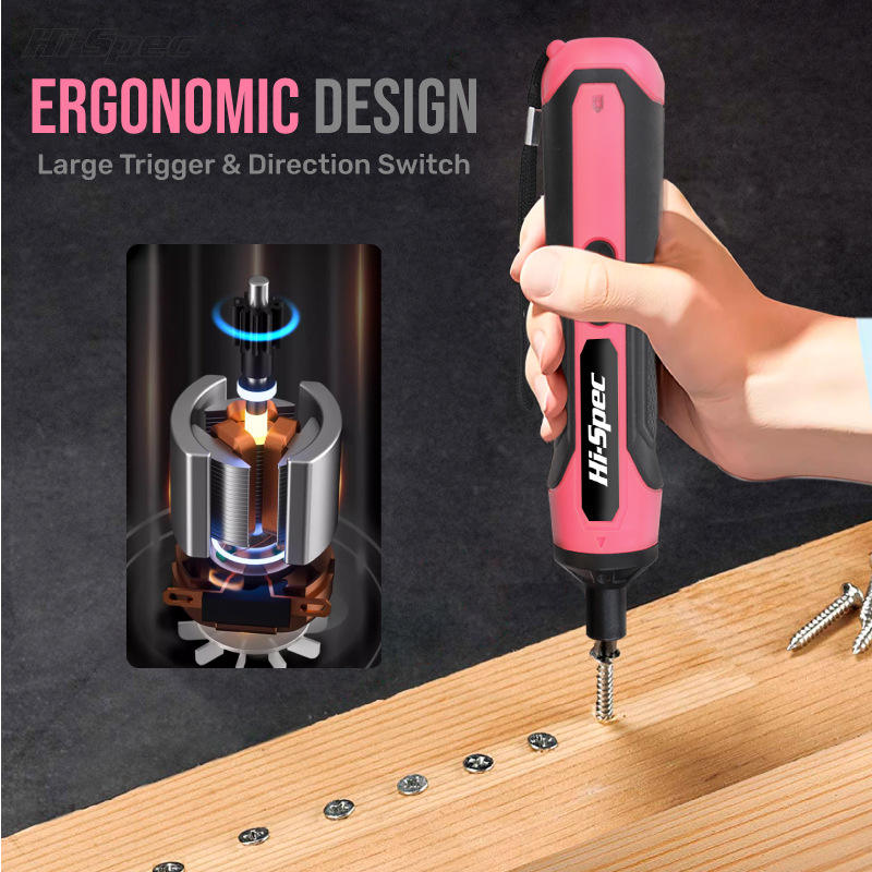 Boîte à outils de réparation Pink Lady, tournevis électrique 3,6 V, moteur à balais lithium-ion, 2700 tr/min, design ergonomique pour les réparations DIY