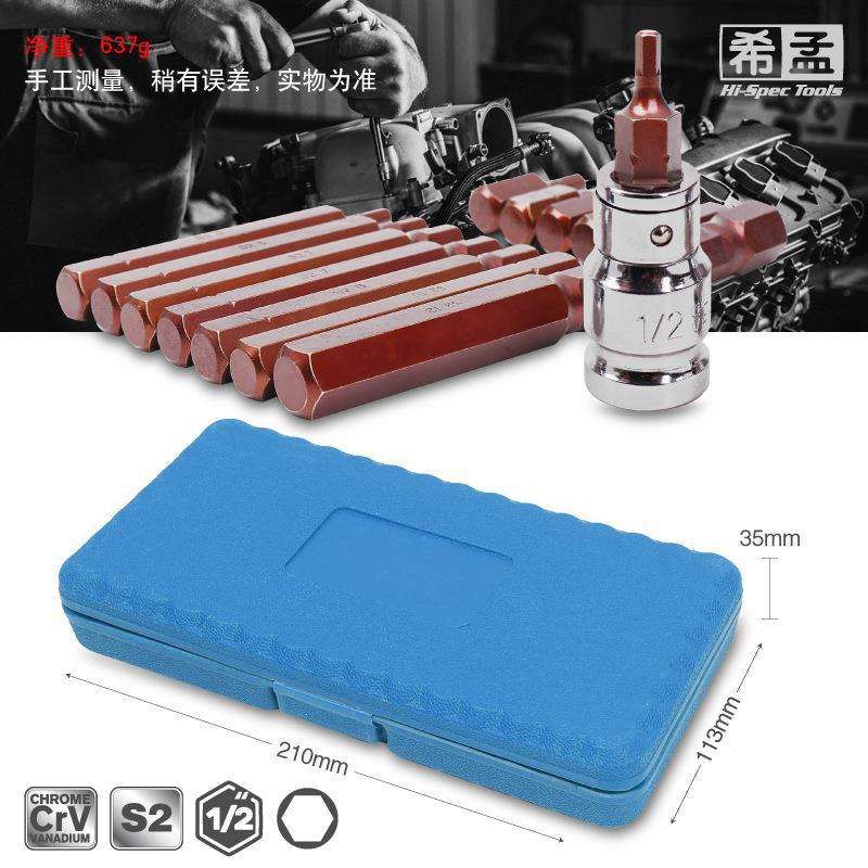Outils Hi-Spec, jeu de douilles hexagonales de 15 pièces, 1/2 pouce, acier S2, chrome poli, étui rigide, outil de réparation automobile