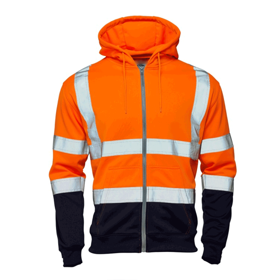 Customized Logo Hi Vis Hoodie with Reflective Tape Zipper Closure & Front Pockets Breathable Waterproof Fire Safety Clothing