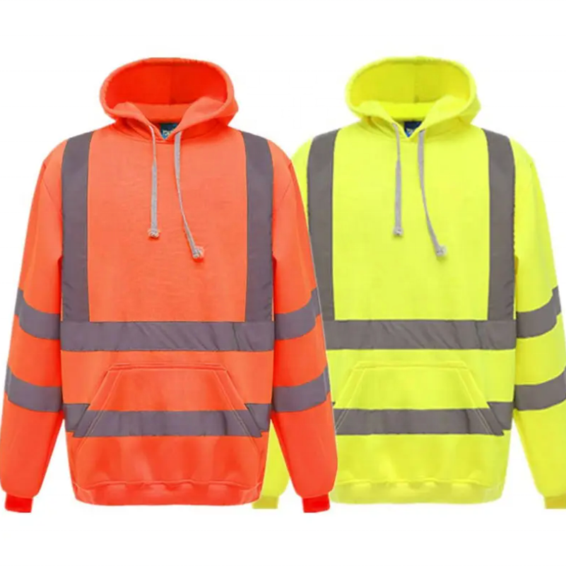 Hi-Vis Polyester Anti-Static Construction Sweatshirt Reflective Hood Pockets Customizable Logo Level D Safety Clothing