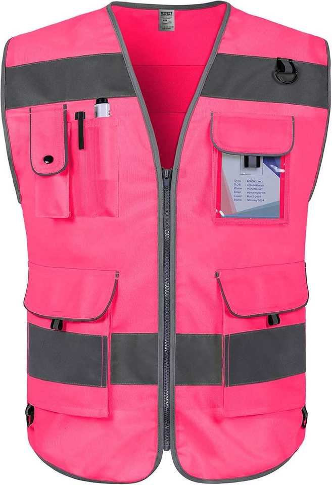 Gilet de sécurité réfléchissant haute visibilité avec poches pour téléphone et carte d'identité pour les arpenteurs, les gardes de sécurité des ingénieurs et les travailleurs de la construction