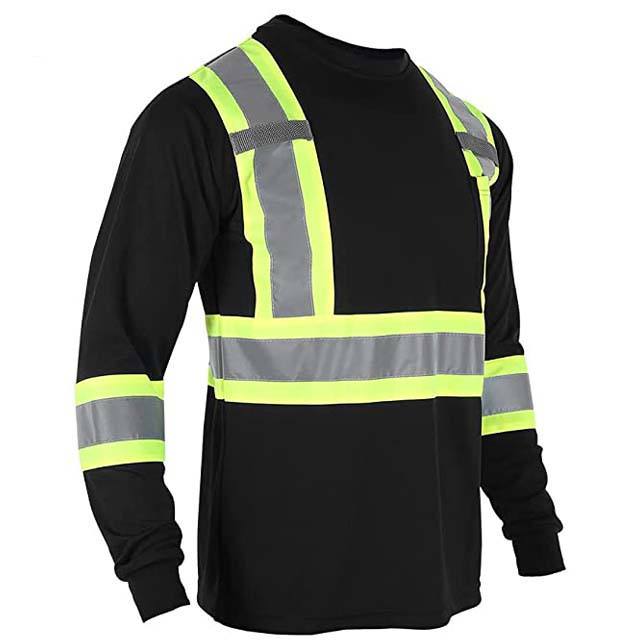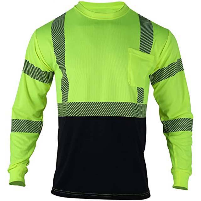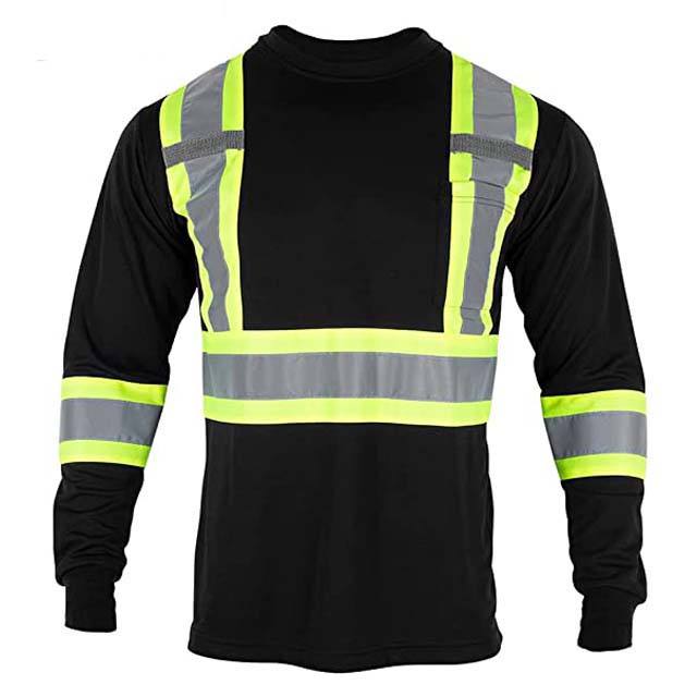 Chemise à manches longues de sécurité haute visibilité poche poitrine avant tissu respirant à séchage rapide Logo personnalisé T-shirt de travail T-shirt de sécurité réfléchissant
