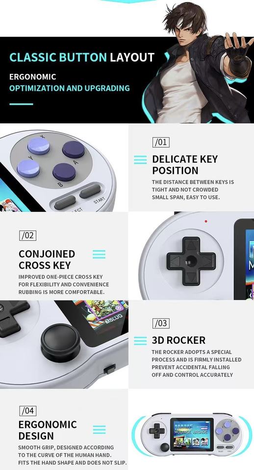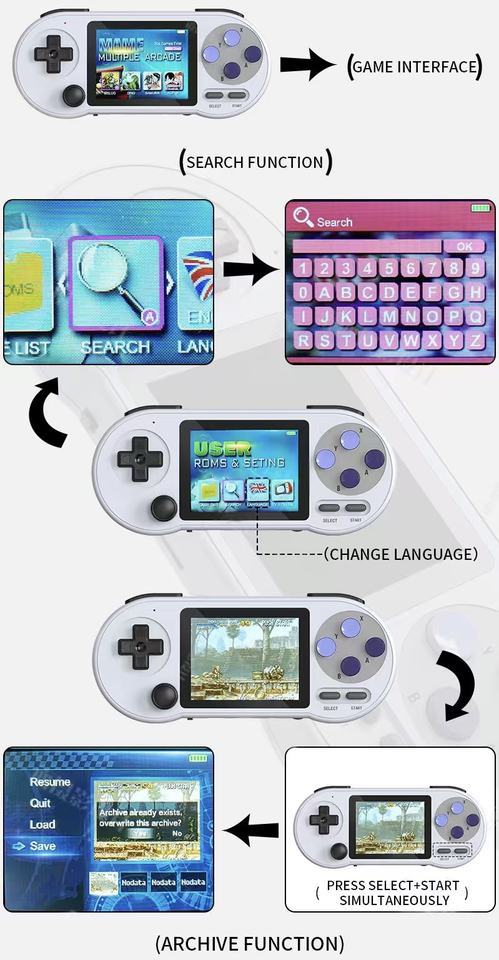 Console de jeu Android HiCyber SF200 Wi-Fi intégré 3000 jeux Écran IPS HD de 3,0 pouces Batterie de 1500 mAh Prend en charge plusieurs jeux