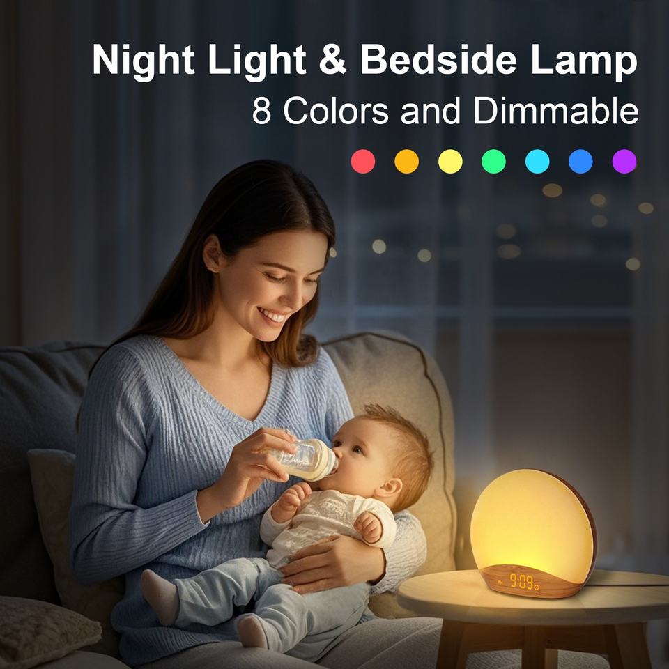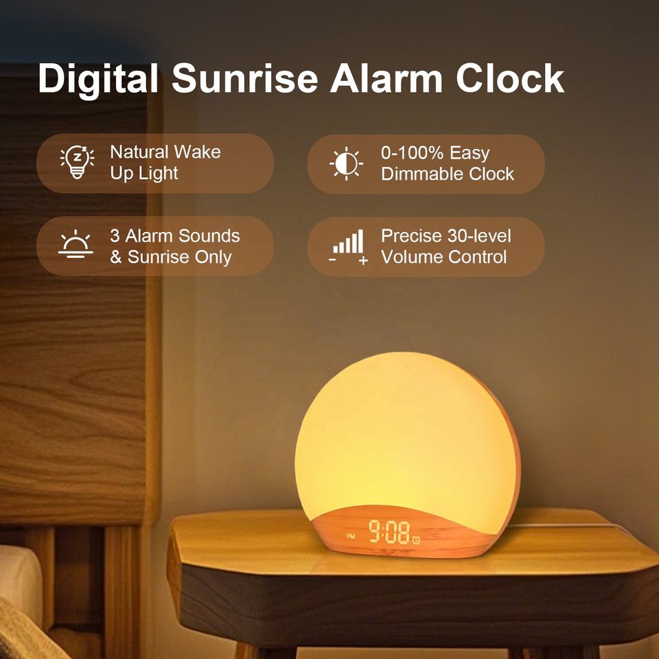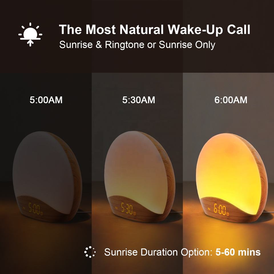 Réveil intelligent en bois HiFiD personnalisé, nouveau produit, avec lumière d'aube et machine à bruit blanc pour la santé