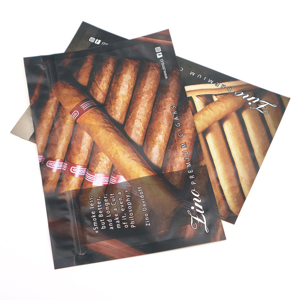 Sacs d'emballage en mylar pour tabac et cigares avec fermeture éclair, imprimés en couleur personnalisés Hibags