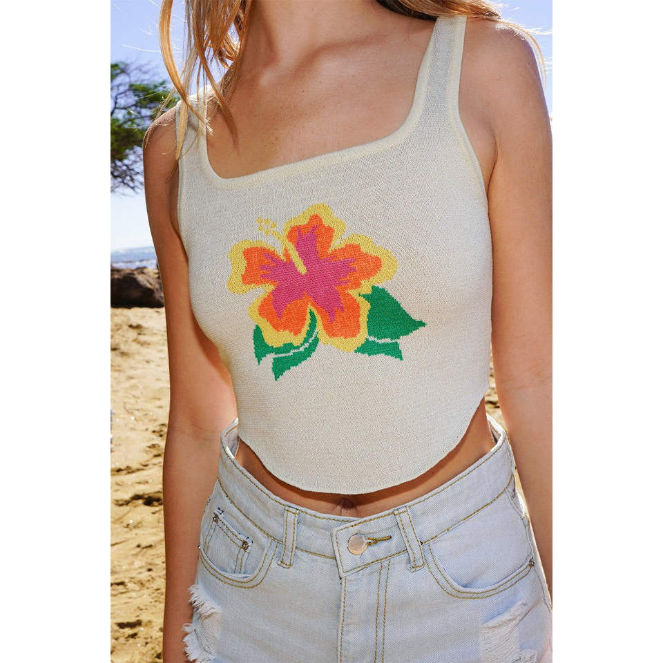 Débardeur court en coton 100% respirant brodé Hibiscus, 1 pièce avec décoration complexe