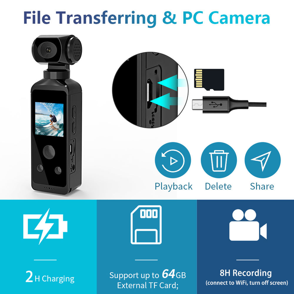 Caméra cachée 4k Ultra Hd Pocket Action Camera Active Dvr Video Waterproof 270 Rotatif Mini Wifi Action Sports Camera