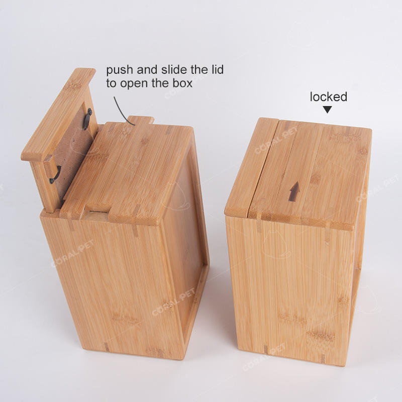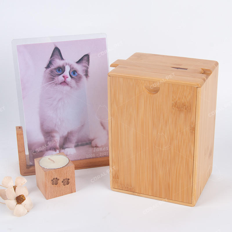 Urne rectangulaire en bambou écologique avec couvercle coulissant et interrupteur dissimulé pour cendres d'animaux de compagnie, souvenir de crémation