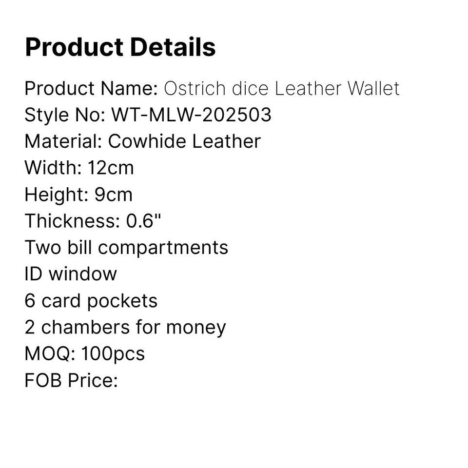 Hide High Quality Men's Wallet Luxury Genuine Cow Hide Leather Ostrich Pattern Wholesale Leather Wallet Bangladesh