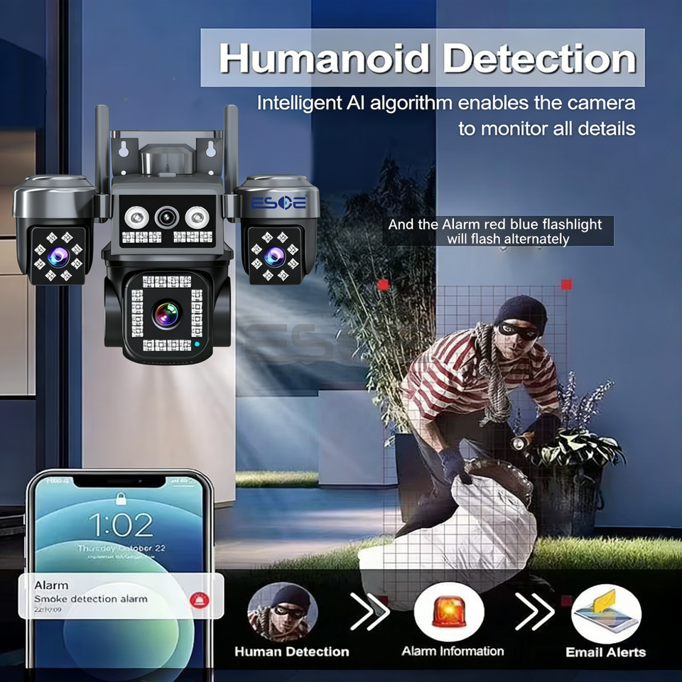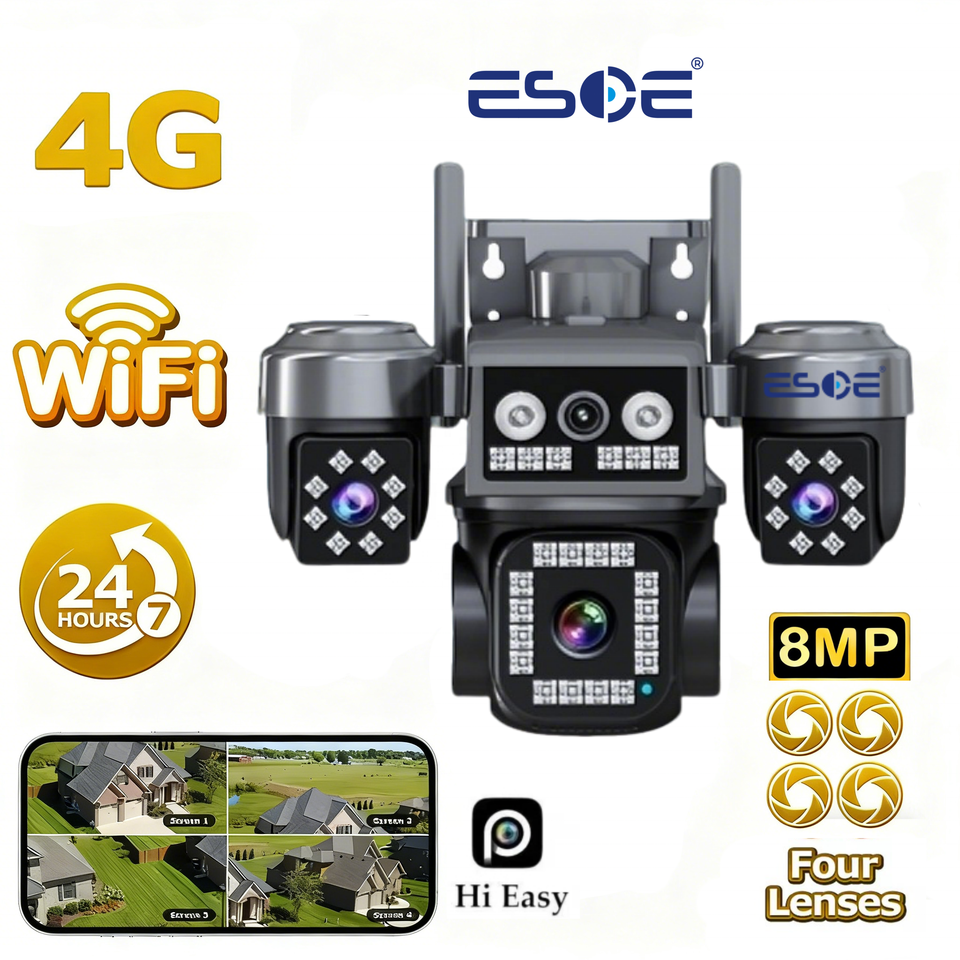 Hieasy 8MP Network Camera 4-Lens IP67 AOV 4G Sim Card Colorful Night Vision Auto Tracking Two-Way Audio CMOS Wireless Cloud