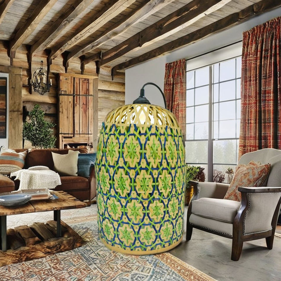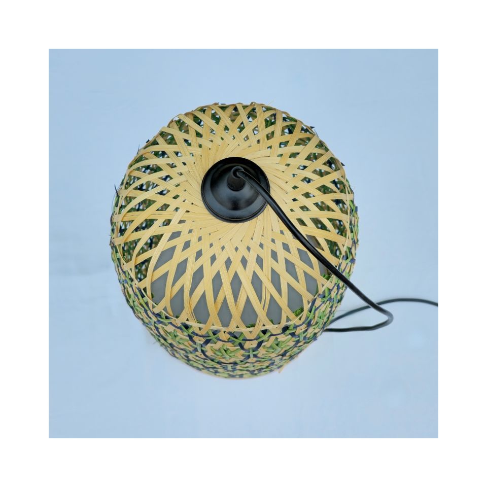 Lustre en rotin fait main Hien Luong, rotin naturel et fibres colorées, écologique, résistant à la chaleur, durable pour la décoration de bar