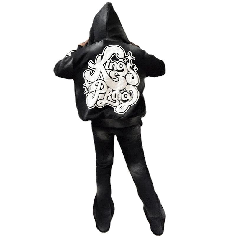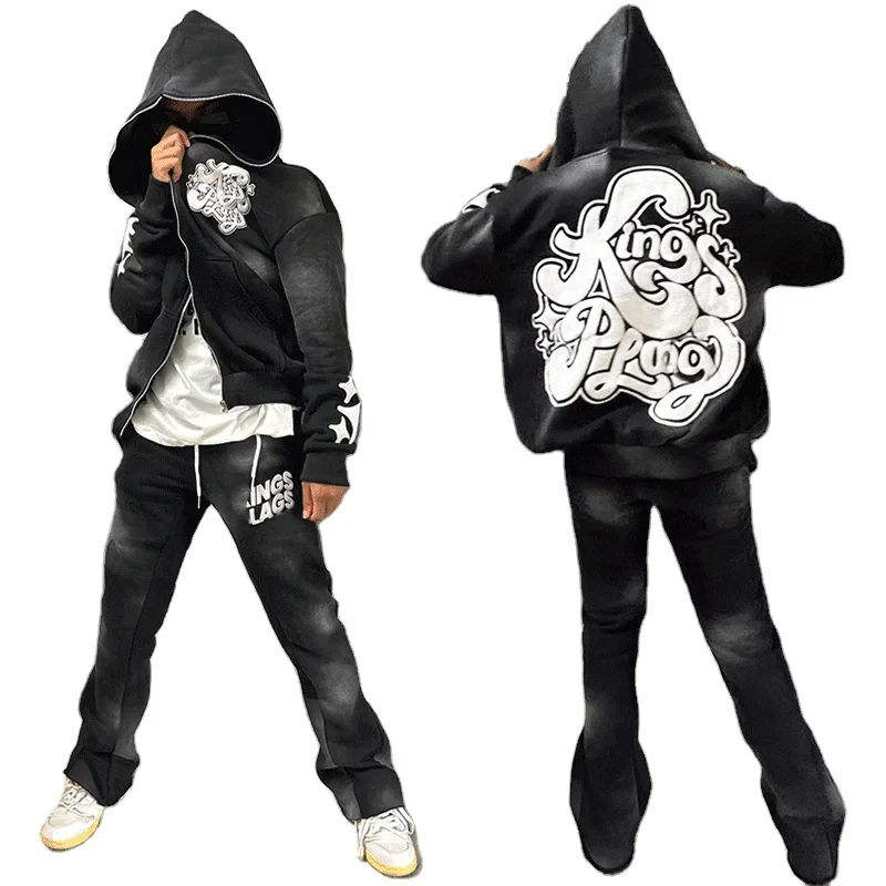 Ensemble de survêtement 2 pièces brodé délavé à l'acide, avec sweat à capuche à manches raglan et pantalon de survêtement évasé, grande taille, hiver, XL, logo, livraison aérienne