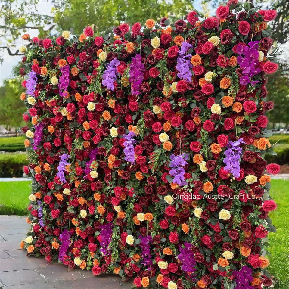 Haute 5D Fleur Panneau Mural De Luxe Flore Décor Graduation Halloween Rouge Rose Violet Fleurs Roll-Up Tissu Toile De Fond De Mariage