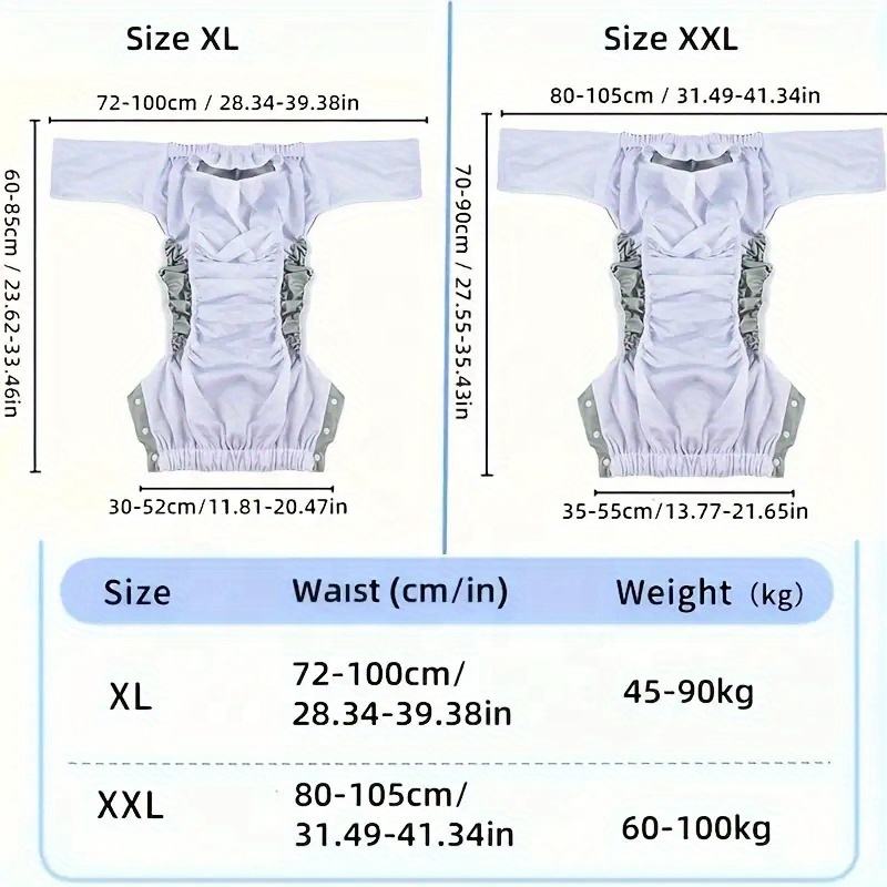 XL (45-100 kg), XXL (60-140 kg)