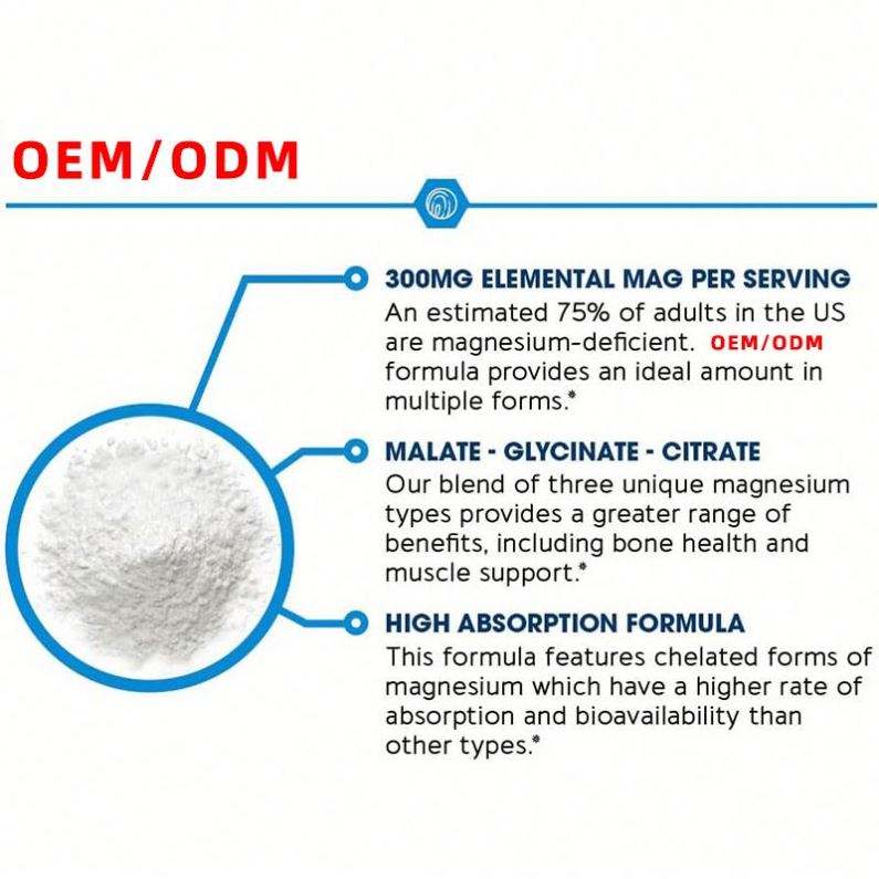 Complexe triple magnésium végétalien à haute absorption 300mg Glycinate de magnésium Malate Citrate Capsules pour la fonction musculaire et nerveuse